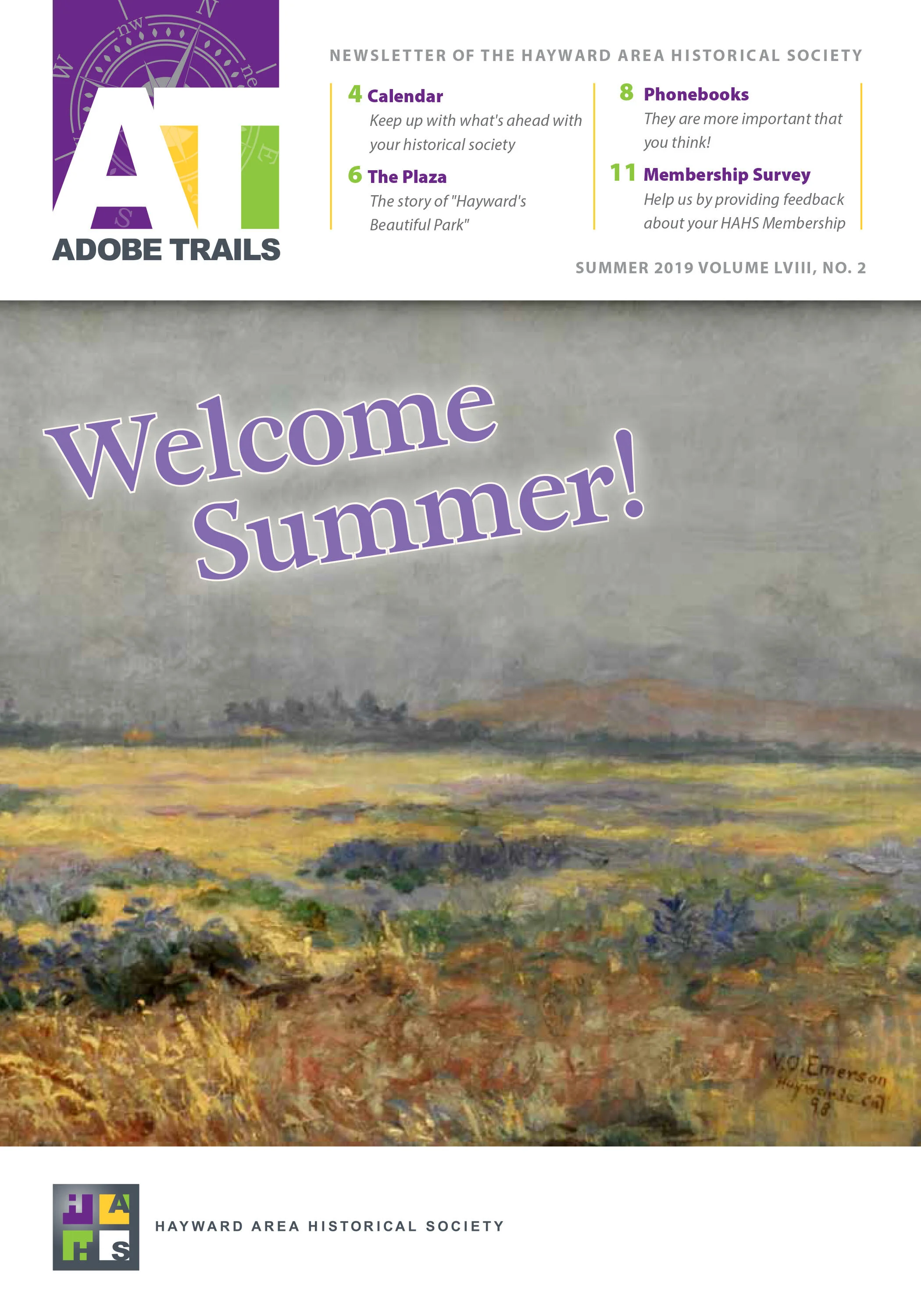 Adobe Trails is a quarterly printed newsletter produced by the Hayward Area Historical Society that includes local history articles, program and event announcements, collections and archive highlights, and other ways to stay connected with your historical society. Below are digital back issues available for download. Subscription to the printed version of Adobe Trails is a membership benefit; please consider a membership if you enjoy our content.