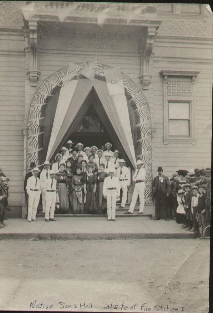 The corner of C Street and Main was originally the “backyard” of Don Guillermo Castro. His home was approximately located on the site of Historic City Hall on Mission Boulevard. Castro’s backyard became an urban corner when the grid pattern of downtown Hayward was laid out in the early 1850s, and the site of a house for many years. In 1888 the Eden Chapter of the Native Sons of the Golden West (NSGW) purchased the property for $3,500. The NSGW was a fraternal and charitable organization devoted to preserving California history. Eligibility for membership depended on having been born in the state of California. Many of the movers and shakers in Hayward at the time were key members of the local chapter, including George Oakes, who was the editor of the local newspaper, and William Hayward himself.